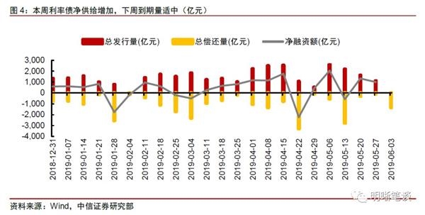 在下周公开市场到期放量的情况下,央行可以采取降准操作予以对冲,也可以续做MLF,并通过逆回购进一步调节。我们认为仍有可能进行降准对冲,因为降准的效率比单纯续作MLF更高,从而为6月流动性平稳运行打下基础,具体方式可考虑在三档两优的框架下,继续做优化。本周的流动性紧张归根结底是出于对中小银行信用风险的担忧,资金融出意愿下降,中小银行同业存单发行受阻导致其资金紧张,央行本周公开市场放量的目的也在于缓和中小银行的流动性压力和稳定市场情绪,而非扩张信用。在这种思路下,我们认为央行仍会以精细调控的方式,根据市场情绪的变化,针对性地做出流动性调节,在市场担忧逐渐消退时抽走多余流动性。因此,预计下周央行续做MLF的可能性较大,公开市场操作将继续根据资金面的变化相机而动。