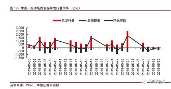 对中小银行信用风险的担忧影响同业存单市场融资功能。包商银行事件引发市场对中小银行信用风险的担忧,导致二级市场同业存单收益率大幅上升,成交萎缩,一级市场上中小银行同业存单发行难度陡增。央行的公开市场操作并不能从根本上解决这一问题,这一点从本周二后一级市场同业存单发行量不升反降的现象中就可见一斑。因此,如何在维持银行体系和债市稳定的前提下,降低中小银行信用风险,或许也是当前政策层面关注的问题。