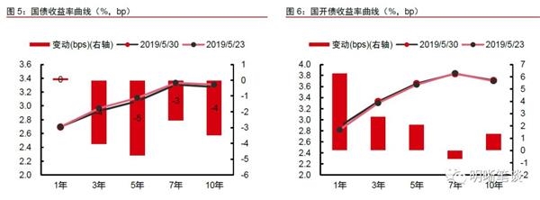 全球债券收益率下行拉动国内债市走强。10年期美债收益率与3个月美债收益率倒挂,虽然择时意义有限,但是衰退或将不可避免。进入5月以后,受到消费走弱影响,经济下行的担忧再起,美股持续下跌,美债收益率下行。此消彼涨之下,中美利差走阔,本周三10年期国债利差已经超过103bp,突破易行长所说的舒适区间80-100bp的上沿,货币政策放松的空间已经打开。在全球经济走弱,美国经济已有衰退征兆的情况下,中国经济也难以独善其身,在避险情绪的推动下,各主要经济体债市纷纷走强,国内债市随之共振。