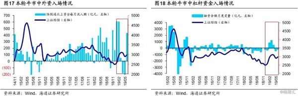 ① 未来潜在入市资金一:外资。05年、08年与12-15年三轮牛市中场外资金均是在第二阶段中后期才开始入场,且随着A股发展,每次牛市的资金也在变化,如05年与08年资金主要是散户、公募基金、险资,而12-15年新增了杠杆资金加入。那本轮牛市未来会有哪些新资金入场?我们认为其中之一就是外资。外资最早进入A股是通过2002年建立的制度,但是资金量一直不大,直到2014年开通以及2016年开通后,外资才开始加速流入。