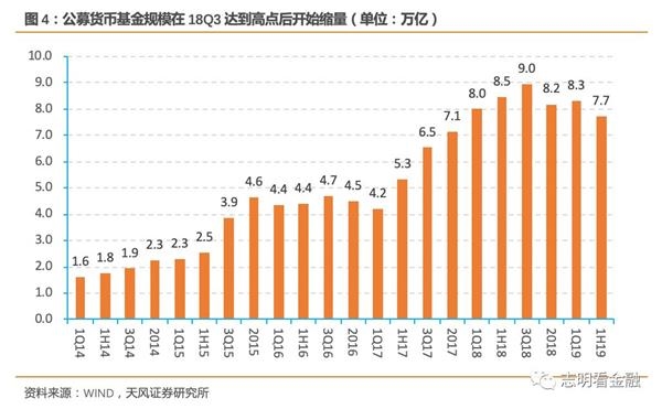 反观公募货基,18年3季末的9.0万亿下降至19H1的7.7万亿。