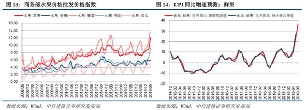 预计CPI同比持平在2.7%左右。猪肉价格在6月继续上行,根据农业部猪肉批发价格指数估测,CPI猪肉价格同比增速较上月涨幅扩大近0.9个百分点。水果价格继续大幅上涨,商务部公布的水果批发价格显示,、鸭梨、葡萄等水果价格已创历史新高,高频数据预测结果显示,6月CPI水果价格同比涨幅可能超过35%,较上月扩大近10个百分点,估测对CPI拉动率扩大0.2-0.3个百分点。鲜菜价格方面,基于农业部批发价格指数的预测结果显示,6月鲜菜价格均值同比增速8.9%左右,连续两个月回落。其他食品项中,预计蛋类、奶类价格同比增速回落,粮食、牛羊肉等价格同比涨幅有所扩大。综合考虑其他食品项,预计食品价格同比增速8.2%左右,较上月继续扩大。非食品项目中,发改委连续两次下调油价,推测油价同比增速跌幅扩大近4个百分点左右。综合考虑其他因素,预计6月CPI同比增速大致与5月份持平,约为2.7%。