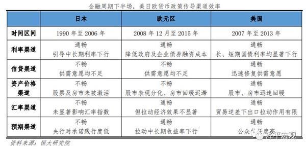 从国际经验来看,美日欧均在金融周期下半场遭遇了货币政策传导的难题。我们对三大经济体分别选取了一段金融周期下行期,美国为2007年至2013年,日本为1990年至2006年,欧元区为2008年至2015年。从共性来看,在金融周期下半场,三个案例中信贷渠道传导均受阻,各国在货币政策操作中均不同程度增加了数量型政策工具。从个性来看,美国复苏最为成功,而日本陷入“债务—通缩”循环,欧元区复苏缓慢、效果不佳,主要原因之一,即在于对信贷渠道的修复效果不同。日本及欧元区应对危机的力度和反应速度均不足,量宽政策推出迟缓。信贷供给方面,未及时救助金融机构,银行不良率快速攀升,风险偏好降低。信贷需求方面,除政府部门加杠杆外,居民和企业部门去杠杆进程缓慢,债务负担过重,收入增长前景低迷造成偿债能力不足,迟迟难以再度加杠杆。而美联储应对危机反应迅速,15 个月内迅速将联邦基金目标利率降至0.25%,且三轮量宽政策陆续推出。信贷供给方面,美联储直接购买金融机构风险资产,转移不良债权,金融机构资产负债表快速出清。信贷需求方面,首先政府部门大幅加杠杆,对冲企业及居民部门去杠杆冲击,随着企业部门资产负债表修复,去杠杆充分,企业部门再度实现加杠杆,经济稳步复苏。此外,美国以直接融资为主的融资体系,使得利率传导渠道也能较快传导至企业融资成本,实现“利率+信贷”渠道联动。