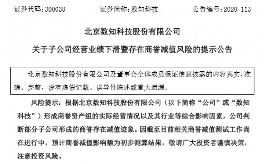 值得关注的是,在公告最后的其他风险提示里,公司还提醒,2020年经营存在较大幅度的下滑,或将出现商誉减值,对公司的经营管理产生不利影响,预计减值金额约为56亿元至61亿元。