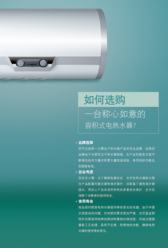 摘要: 中国 江苏省 靖江市 热水器 行业优秀企业 江苏光芒集团有限公司 为您提供优质产品和服务:光芒锐博电热水器
