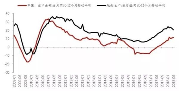 而从出口情况来观察,也能侧面印证整个制造业产能的转移,例如观察中国与越南货物贸易出口增速的走势,就可以发现,早在2010年中国出口总额的同比增速已经低于越南。例如纺织等具体产业,向海外转移的迹象也早就出现。