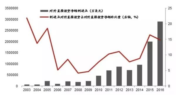 当前中国产业向外转移与上世纪80年代的日本,也有些类似之处。例如近年来中国制造业对外投资的趋势比较明显,对外直接投资的金额逐步走高,同比增速也保持在较高水平。