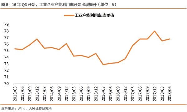 以申万行业分类来看,成本增速大幅下降的行业主要集中在中上游企业,比如典型的钢铁、交运、采掘、化工等。而这些中上游行业的成本之所以可以比较快得下行,我们觉得还是得益于连续的供给侧去产能后,规模以上工业企业尤其头部上市公司,它们的产能利用率得到了持续的改善。