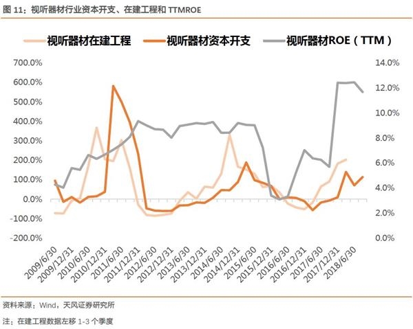 下图中我们更新了这些行业资本开支、在建工程和TTMROE。