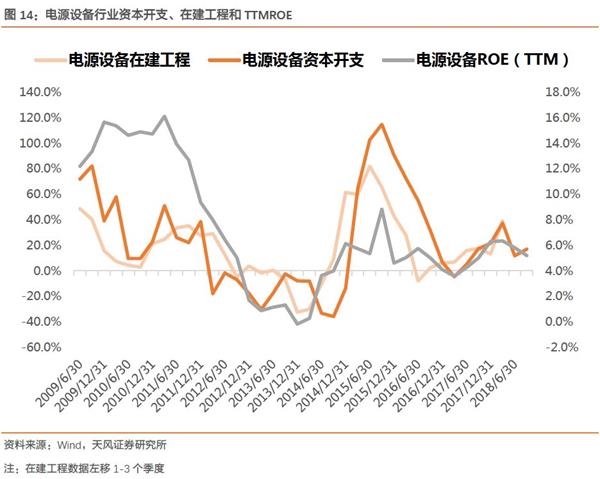 在ROE向上阶段的尾声,对应了产能周期上升期的结束,也就是在建工程达到顶部位置,而判断标准是其领先指标资本开支是否已经开始回落。