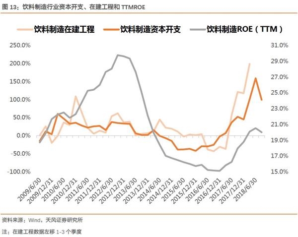 因此,从资本开支、在建工程的角度来看,18Q3开始,ROE有较大回落风险的二级行业包括: 白色家电、视听器材、包装印刷、饮料制造、电源设备、稀有金属、中药等。