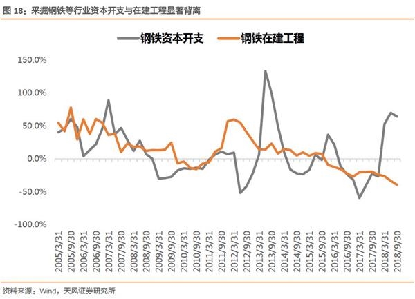 但是,受制于供给侧改革的中上游周期行业,则明显不同,典型的案例是采掘和钢铁,虽然它们资本开支的增速出现了明显提升,但在建工程却仍然趴在底部没有起来,这与不允许新增产能的行政措施直接相关。