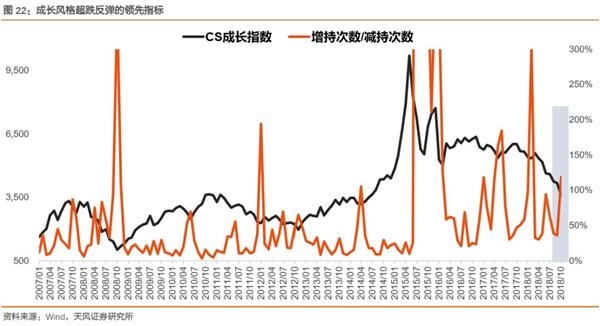 从风格角度出发, 领先意义最强的成长板块,截至10月增持家数/减持家数的比例也已经明显提升。