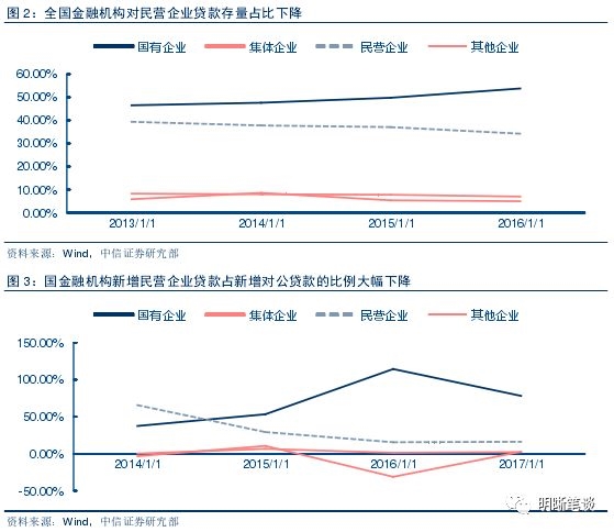 民营企业这种重要作用形成鲜明对比的是,近几年来,其融资渠道和规模都受到了不同程度的限制。在宏观经济转型调控中,自2017年开始的金融“去杠杆”、“去影子银行”等措施让杠杆率高、规模扩张过快的民营企业在资金端承压。根据银保监会最新统计数据显示,民营企业贷款占银行贷款总额的25%,对应占对公贷款的40%左右。其实,从13年到16年期间,全国金融机构新增民营企业贷款占新增对公贷款的比例由65.6%骤降到16.91%,存量占比从39.35%下降至34%。