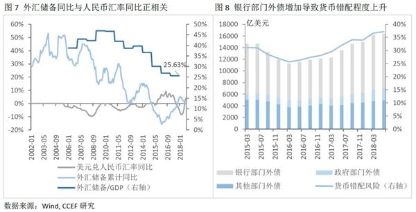 自2016年以来,我国外汇储备一直稳定在3万亿美元左右。2018年4月至今,人民币兑美元汇率下跌幅度超过10%,但外汇储备月均变动规模仅93亿美元,远小于2015至2016年人民币汇率下行时的月均变动规模(377亿美元)。由此可见,中国央行已经退出外汇市场常态化的直接干预,更倾向于发挥宏观审慎管理的作用。从外汇储备结构上看,2016年至今,以短期外债/外汇储备衡量的货币错配程度有小幅上升趋势,主要是由银行部门的外债增加所致。