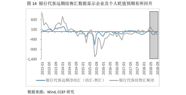 远期结售汇当月签约规模反映企业和个人的汇率预期。从2018年5月份以来,银行代客结售汇顺差一直下滑,7月份进入逆差状态并呈现扩大之势。可见企业和个人对于人民币汇率的贬值预期已经形成,但其程度仍远低于2015年811汇改至2016年年初时期。远期净结汇数据来看,贬值预期自2018年7月以来有所收窄(当然也有可能与外汇交易中心提高远期售汇保证金相关)。
