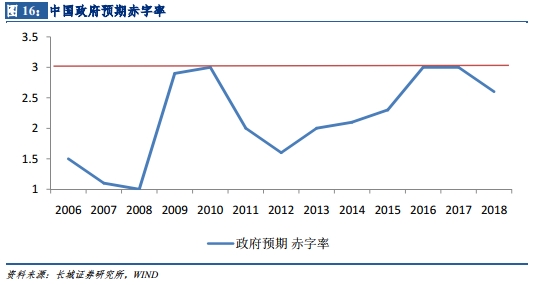 人民币目前并不具有美元同等地位,不具有相同的优势,因此在增加赤字率的问题上,我国政府会更加慎重。以我国目前的经济发展情况以及当前赤字率2.6%来看,2019年预期赤字率有0.5个百分点左右的提升空间,大幅增加赤字率的可能性不大。