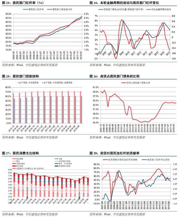 未来居民部门加杠杆的主要动力或仍在房地产。我们的测算显示,尽管近期房地产销售总体不强,但居民消费支出中投向居住的比例却出现了连续10个季度的同比上升。居住支出包括房租、水、电、燃料、物业管理等方面的支出,也包括自有住房折算租金,2018年前三季度,居住项目拉动居民支出增速2.2个百分点,增量支出中超过三分之一的比重投向了居住,是拉动居民支出增长最主要的分项。因此我们认为居住需求仍是“人民对美好生活向往”的重要组成部分,刚需和改善型购房则是居住需求的最终实现方式。我们的测算显示,近十年来房贷对居民加杠杆的贡献率领先于居民杠杆的同比变动,居民部门杠杆在2009、2016两次大幅上升之前,房贷对居民加杠杆的贡献率都超过了70%,意味着只有房贷拉动才能导致居民部门大幅加杠杆。
