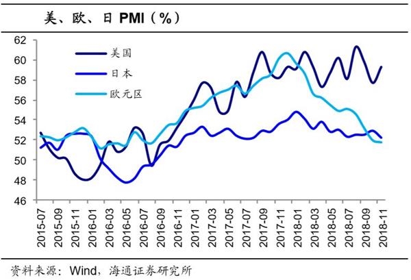 物价:通缩风险升温。上周蔬菜、鸡蛋继续下跌,肉价有涨有跌,食品价格整体下降0.1%。11月回落至2.2%,预计12月CPI将降至2%。11月环比下降0.2%,同比涨幅回落至2.7%。预计12月PPI环比下降1.2%,12月PPI同比将降至0.7%。我们预测19年PPI将降至0以下。综合来看通胀风险大幅下降,而通缩风险明显升温。
