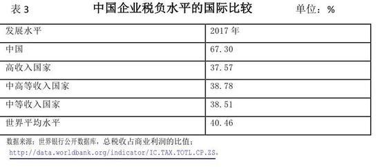 从表3中国企业税负与世界其他国家税负比较看,比高收入国家平均值高出近29.73个百分点,比中高等收入国家平均水平高出28.85个百分点,比世界平均水平高出26.84个百分点。当然,这里有中国以间接税为主的因素。但是,政府收入的负担,主要还是压在企业身上。