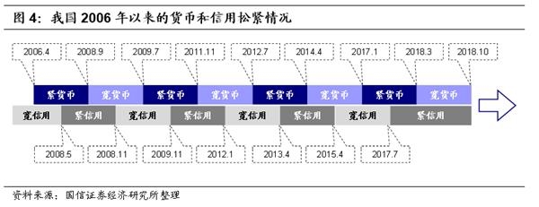 首先,清楚地判断货币和信用的走向,是明晰货币向信用传导原理的前提。借助货币和信用松紧变化的拐点,我们才能够将货币向信用传导的效果逐一对应。基于以上逻辑,了解货币向信用传导机理的首要工作,是对历史货币和信用的松紧阶段做出尽可能明确的划分。