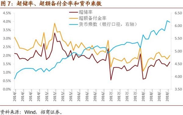 此外,根据标准M2的定义,即四部门(家庭、政府、金融机构、非金融企业)持有的可动用的现金和存款,我们构建了新的广义货币供给指标(NM2),数据显示,其与M2的走势相似,但2017年以来绝对水平更低,反映了金融去杠杆力度更大的影响。不过,2018年6-9月上述情况有所逆转,对应实体部门转而成为去杠杆的重点。10月NM2同比增长8.4%,低于前值8.9%,亦再度表现较弱,主要受银行超额备付金减少拖累。11月NM2同比增长8.5%,略高于前值8.4%,与M2基本相当。