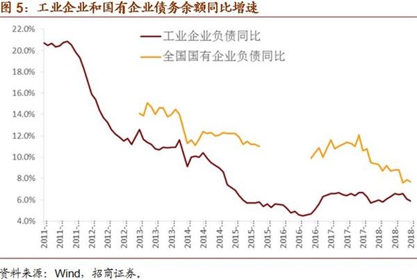 在分析非金融企业时,我们建议将其分解为两个部分:一是市场化程度比较高的部分,可以用工业企业数据进行较好的拟合;二是僵尸企业,所谓“僵”指的是负债对于盈利的反应僵化,可以用国有企业数据进行较好的拟合。图5的数据显示,本轮工业企业去杠杆始于2011年中期,其债务余额同比增速从2011年中的20%降至2016年7月份的4.5%,有比较明显的出清。而随着供给的减少,2016年初工业企业盈利开始持续好转,并引发了此后杠杆的增加,2017年4月工业企业负债同比增速升至6.7%;在工业企业加杠杆的过程中,伴随着制造业投资和民间的恢复,对中国经济形成了一定程度上的支持。但最新的数据显示,2017年4月至今,工业企业加杠杆似有触顶回落的迹象,这与2017年一季度其盈利见顶相符。2018年10月工业企业利润同比增长3.6%,低于前值4.1%;虽然工业企业利润率和毛利率均是2011年以来同期的最高水平,但资产周转率是2011年以来同期的最低水平。从负债的角度,10月工业企业负债余额同比增长5.9%,低于前值6.1%。根据现有的数据,我们认为PPI同比增速后续将继续震荡下行,与此相应,工业企业利润将边际恶化,负债增速将进一步下行。对于国有企业而言,2013年有数据至2017年11月之间,剔除掉一段不可比的部分,其债务余额同比增速在绝大多数时间里稳定在10%-15%之间,2017年底以来,该数据出现明显下降,9月末降至7.9%,略高于前值7.6%(历史最低水平)。若该数据在未来继续下行,我们则相信本届政府在第二任期内,在去僵尸企业杠杆和国有企业改革方面,会有一些实质性的推进,对照工业企业数据,国有企业负债同比增速或需降至5%左右才能实现出清。我们预计,在到2019年中左右的时间里,非金融企业中市场化程度比较高的部分难言加杠杆,僵尸企业会去杠杆,合并来看,非金融企业就是去杠杆的状态。关注由此带来的信用风险释放和信用利差重估,事实上2017年底以来,中国的信用利差似乎逐步恢复了与10年国债收益率逆向相关的正常走势,为4万亿之后首见。