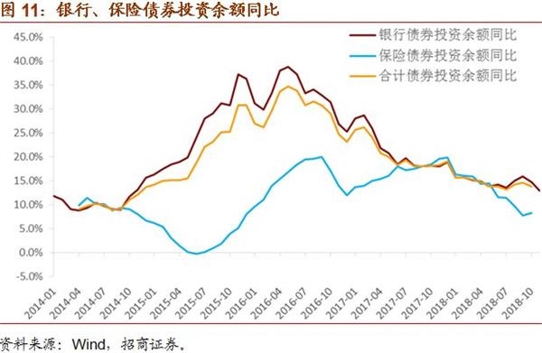 对于债券而言,在滞胀的中后期随着融资需求主动回落,长端利率债收益率会触顶回落。目前而言,我们认为债市确定性走牛需要两个条件,一是实体部门融资需求的持续回落,二是金融机构去杠杆接近尾声;目前来看,两个条件似乎都已具备。我们维持此前的判断,今年2月以来中国所处的状态是,实体部门债务余额同比增速小幅回落,而金融机构负债同比增速低位企稳。上述组合意味着,债市面临的环境是,供给小幅下降,需求基本稳定,因此收益率中枢整体处于温和下行通道。除了供需波动引起的冲击外,市场预期的波动和对政策的一些误读,可能会加大收益率下行中的波动,心动还是幡动。短期来看,本期对于债券市场的判断是我们眼中年内最难的一次,由于价格至少已经在一定程度上反映了数据的变化,因此,我们将不得不主要根据预期来进行预测,而非根据已有数据做出对策。我们倾向于认为,近期10年国债收益率或在3.4%附近波动。此外,2018年11月,银行债券投资余额同比增速录得12.9%,低于前值14.8%,显示银行配置力度减弱,这与银行资产余额增速重新回落一致。