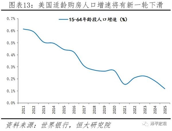 利率水平上升叠加适龄购房人口增速下行,2019年美国房地产景气度大概率边际下行。我们提出的房地产分析框架——“长期看人口,短期看金融”在美国同样适用:短期金融方面,伴随美联储加息带动市场利率上行,地产投资、居民购房成本抬升,房地产投资将逐步放缓。11月美国30年抵押贷款平均利率上升至4.87%,较10月略升0.04个百分点,连续4个月上升,已回到2011年初水平。人口方面,15-64岁年龄段人口增速将于2019-2021再度快速下行。