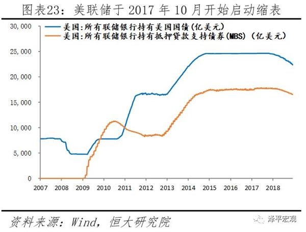 从美联储缩表的角度来看,缩表将导致长期国债需求下降,从而使得长端利率上升,在一定程度上具有加息效果,尽管当前缩表不及预期,但仍部分提升长端收益率曲线。按美联储公布的缩表计划来看,2018年美联储应缩减国债2520亿美元,MBS 1680亿美元,合计共4200亿美元。而截至2018年11月,美联储应减少MBS、国债合计3700亿美元,实际资产负债表上MBS、国债分别缩减1115亿美元和2011亿美元,较计划少减365亿美元、209亿美元,表明在2018年加快加息的背景下,美联储有意放缓缩表进程,防止市场利率水平过快上行。我们预计,在2019年放缓并结束加息、国债收益率部分倒挂的条件下,美联储或将相对今年加快缩表进程,部分提升国债长端收益率,改善收益率曲线倒挂结构,从而在实质上进行加息。