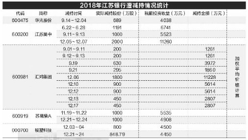 江苏银行遭密集减持 5家上市公司股东全年套现逾8亿