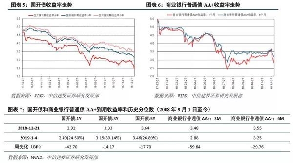 这两周(12.24-1.6)国开债收益率曲线平坦化大幅下行,1Y下降最多;收益率历史分位数约为27.32%,3Y稍高;商业银行普通债AA+收益率也平坦化大幅下行。