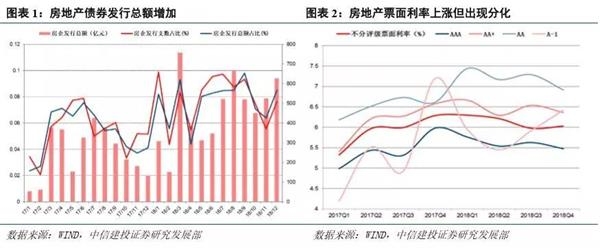 债牛行情、地产债发行监管边际放松和非标受限是地产债量升利率涨的主要原因。18年地产债发债量显著抬升,主要原因一是17年债券熊市,使得优质企业贷款融资成本低于债券,带来了17年债券融资规模大幅下降,而18年债券牛市行情明显,18年底3Y中短票AA+收益率较17年底下行了149BP,债券逐渐替代贷款等融资方式使得整个非金融信用债发行规模较17年增长了35%;二是16年10月起地产债融资政策大幅收紧,发行标准大幅上升,使得17年全年地产债发行迅速降温,16年1-9月份地产债发行占比在10%左右,而16年10月至17年基本在5%左右,18年地产债偿还压力显著加大,监管层开始支持以偿债为目的的发债,使得地产债发行政策有所放松;三是2018年政策对非标的限制非常明显,从3月份开始月度新增社融中的非标就变为负值,而非标中房地产占比非常高,非标净减少大大限制了地产融资,使得地产商迫切需要从其他渠道补充融资缺口。