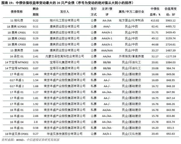 估值变动较大的个券
