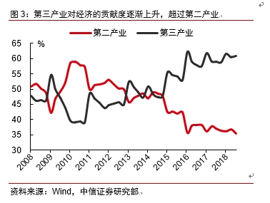 经济高质量发展要求下,产业结构转型升级是必要步骤。改革开放40年来,我国经济经历较高速发展,但随着经济总量的扩大,投资拉动经济的效率逐渐下降、服务业发展滞后、区域发展失衡、传统行业产能过剩等结构性问题亟待改善。全球发达国家和发展中国家也积极转变发展思路,提高高附加值产业和服务业在经济中的比重,形成新的增长点。因此我国经济结构的转型升级是实现可持续发展、高质量发展的必然选择。