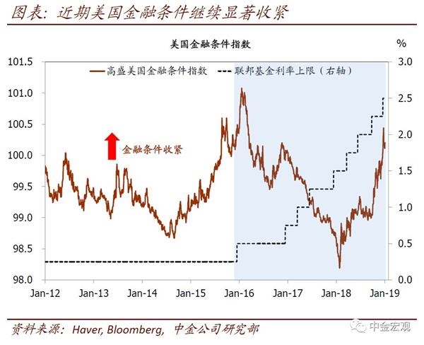 未来的“观察点”以及可能的演化路径。未来观察的关键点在于美联储后续立场调整的速度是否够快、以及力度是否足够缓和经济的快速下行曲线。其中,1月及3月FOMC会议上美联储是否进一步释放鸽派信号将是关键。如果会议上释放鸽派信号,参照2016年时期的经验,其可能帮助整体稳定金融市场,从而缓和金融条件收紧速度,甚至可能带来边际上的金融条件放松。