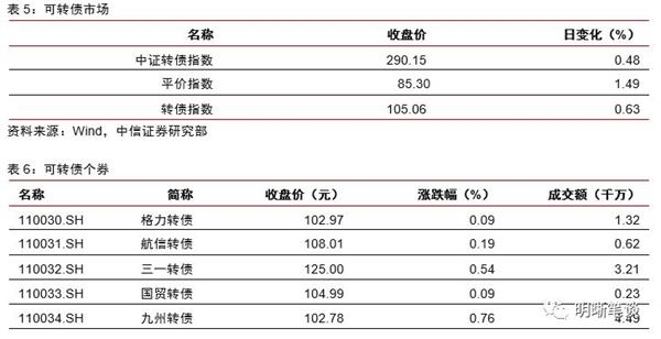 1月18日转债市场,平价指数收于85.30点,上涨1.49%,转债指数收于105.06点,上涨0.63%。115支上市可交易转债,除再升转债横盘外,73支上涨,41支下跌。其中海尔转债(14.92%)、鼎信转债(4.57%)、隆基转债(4.05%)领涨,特发转债(-3.27%)、盛路转债(-3.07%)、广电转债(-2.89%)领跌。115支可转债正股,除吉视传媒、洪涛股份、海印股份横盘外,31支上涨,79支下跌。其中,隆基股份(6.81%)、济川药业(6.65%)、鼎信通讯(6.04%)领涨,特发信息(-5.00%)、横河模具(-4.59%)、蓝色光标(-4.25%)领跌。