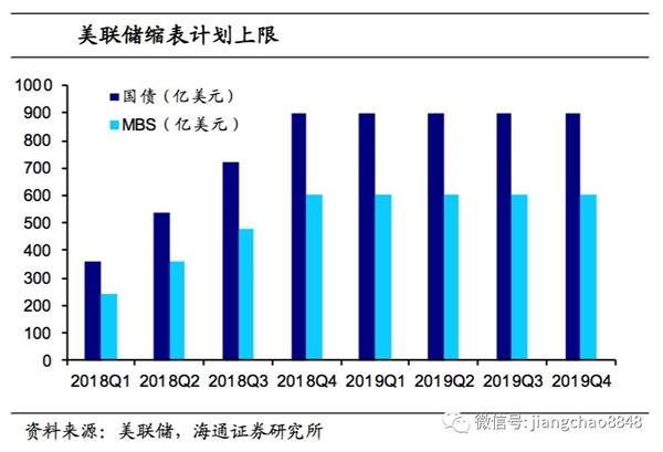 但仅有加息还不够,本轮美元流动性的收紧明显超出了以往的加息周期,其中缩表也是重要原因。加息与缩表的“共振”导致美联储大幅回收流动性,美元供给不足,利率明显上升。目前美联储对于加息的预期有所减弱,但缩表仍较为坚持。按照美联储缩表计划,2019年计划缩表上限为6000亿美元,较2018年增加43%。