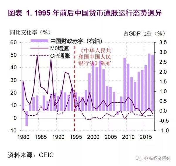 在20世纪80年代和90年代初这段时间里,一旦财政支出较多(往往因为政府做的投资项目较多),货币增长就会失控,从而让物价飞涨。我国在改革开放之后经历的两次高通胀都发生在这段时间,给一代中国人留下了“抢购风”的深刻记忆。