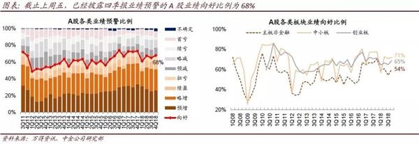 4)以中小板、创业板为主的1100余家上市公司已经披露年报预警。已经披露四季报业绩预警的A股业绩向好比例为68%,主板/中小板/创业板的比例分别为54%/71%/65%。钢铁、餐饮旅游业绩向好比例较高,航空机场、证券、公路铁路物流相对较低。1月底创业板公司将完成年报业绩预警披露,目前已披露公司占比46%,本周将是创业板集中披露年报业绩预警的时点,需要防范部分公司因商誉、融资压力等可能存在的业绩风险;