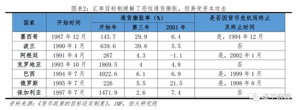总体来看,汇率目标制缓解了当时的恶性通货膨胀。该制度具有以下优点:1)可以在短时间内把物价控制在一定范围内;2)操作简单清晰,容易被公众理解;3)可以有效约束货币政策短期机会主义。但是,也存在一定的问题:1)丧失了货币政策的独立性,米德冲突;2)目标国的经济波动也会传导给本国;3)容易遭受投机资本攻击,爆发货币金融危机。