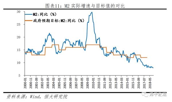 故在2018年政府工作报告中,政府并不像之前公布下一年的M2增速目标值,只是说要保持广义货币M2、信贷和社会融资规模合理增长。