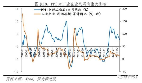 随着PPI的回落,2019年二三季度可能由正转负,意味着企业利润下滑和实际水平上升,货币政策降准、降息可期。回顾2018年,PPI的高位回落使货币政策表面松实际稳。一方面,PPI仍处高位,货币政策没那么着急放松,总体环境稳健偏紧;另一方面,PPI有回落趋势,货币政策边际放松进行试探,同时通过公开市场操作回笼降准释放的流动性。展望2019年,随着PPI的不断回落,我们预计上半年在下降趋势之时有望继续降准;一季度PPI刚开始回落尚未负值降息可能性不大,二三季度随着PPI由正转负,央行可能会降低OMO等政策。但需要注意的是,投资端表现出了较强的韧性,如果2019年看到超预期支撑PPI企稳,意味着降息的必要性可能会减小。