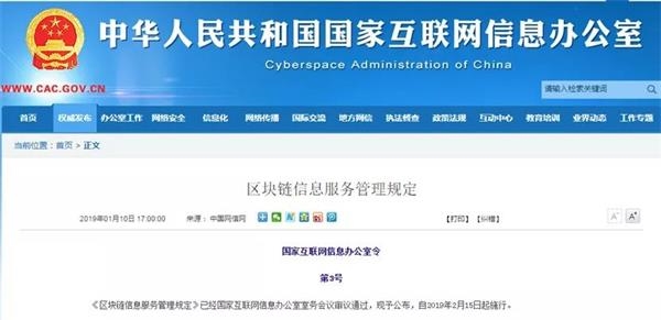 《区块链管理规定》已经国家互联网信息办公室室务会议审议通过,自2019年2月15日起施行。