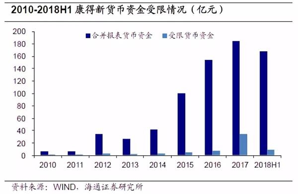 疑点一:披露的数据中并未显示货币资金存在大额受限的情况。纵观公司历年披露的,受限资金的主要用途为向银行申请银行承兑汇票、保函、信用证的保证金存款,并于“其他货币资金”科目中统计。2017年和2018年H1受限金额中还包含部分持有到期的定期存款。不过受限资金在货币资金总额中只占有很小的比例,2018年H1披露的货币资金为167.81亿元,受限资金仅8.79亿元。从账面上看,公司在使用货币资金方面的阻碍很小。