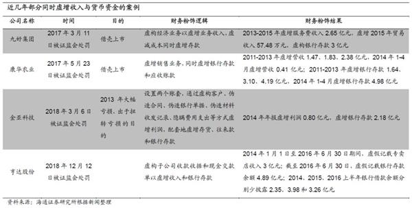 虚增利润的同时虚增货币资金。虚增货币资金的情形可能涉及财务造假。通常而言财务粉饰的目的多出于做大利润或资产,以支撑股价和获得资本市场青睐。虚增的会反映在资产负债表中的“未分配利润”项下,根据会计等式“资产=负债+所有者权益”,所有者权益增加,相应的需要增加资产项目金额或是减少负债,而虚增货币资金则是一种典型的增加资产的手法。虚增的货币资金并非真实存在,尤其是出于“扭亏为盈”目的而进行财务粉饰的企业,因为本身产生现金流的能力存在问题,外部融资需求仍然较强,就可能出现存贷双高的现象。