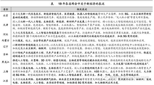 中西部重技改升级,东部主打战略新兴。从地方两会看,东北地区、中西部地区更侧重传统产业改造升级,更强调加大投入;东部发达地区更侧重打造以新材料、新能源、智能制造、生物医药为代表的产业集群,更强调技术应用;而加快5G商用、加强工业互联网等新型基础设施建设更是成为各地方政府的共识。
