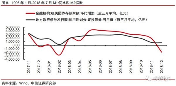 机关团体活期存款下降与地方政府债务置换进度加快有关。根据中国人民调查统计司于2012年12月31日编制的《金融统计金融工具类指标释义》,“机关团体存款”是指“机关法人、事业法人、军队、武警部队、团体法人存放在银行业金融机构的定活期存款以及上述单位委托银行业金融机构开展委托业务沉淀在银行的货币资金。”由此可见,公积金存款和社保基金存款以及自营收支存款是机关团体存款的主要组成部分。此外,部分地方政府置换债券和新增债券资金将短暂留存于机关团体账户(主要为地方政府融资平台账户),是导致2016机关团体活期存款增加的主要原因,数据上看,地方政府债置换变动与M1波动较为一致。而近几年随着债务置换临近,地方政府置换进度加快,由置换债资金转化的存款规模下降。