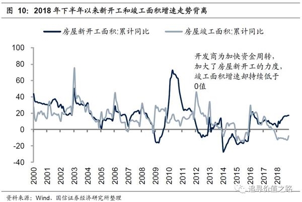 国内需求不振的核心逻辑集中体现在商品房新开工面积增速有可能大幅下滑。2018年下半年,房屋新开工面积同比增速依然维持在近两年的较高水平,并没有出现显著的下滑,对房地产投资增速的稳定存在着一定的支撑。但同期的商品房销售及土地购置费增速却持续回落,与新开工面积增速形成较为鲜明的对比,我们认为上述指标之间的走势背离主要在于下半年开发商为加快资金周转,加大了房屋新开工的力度,以期通过期房销售快速回流资金,这一点从新开工和竣工数据可以得到印证。房屋销售(领先指标)和土地购置费(拿地情况)增速的回落预示着未来较高的房屋新开工增速将无以支撑,商品房新开工增速有可能会出现大幅下滑,由此房地产投资大概率向下。