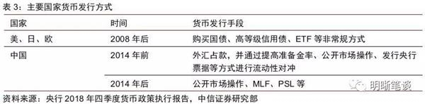 在报告专栏1中,央行对货币发行机制进行了阐述,介绍了货币发行的方式。货币发行既包括现金发行,也包括存款等广义货币的创造。在信用货币体系下,货币发行的主要方式包括商业银行通过发放贷款等资产扩张创造广义货币,中央银行通过购买国债、央行票据等资产扩张创造基础货币,并通过基础货币的调节对广义货币的创造进行调控。从这一阐述上可以看到,海外QE也属于货币发行的方式之一。